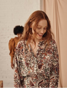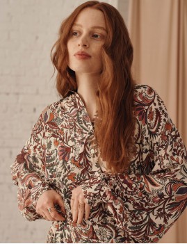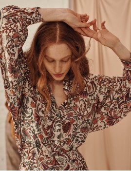 La blouse BERNA s?enfile avec un plaisir non dissimulé tant elle est douce et son tombé est fluide. Son imprimé vintage en fait une pièce pleine de nostalgie pour cet hiver.